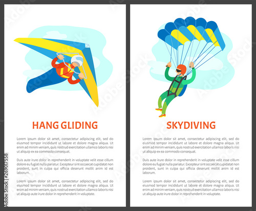 Hang gliding athlete pictures, extreme sport, art.illustration, vector