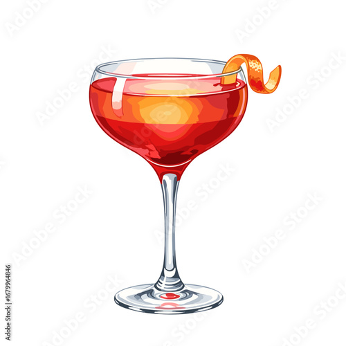 Vector illustration of a cocktail in a coupe glass with orange slice.