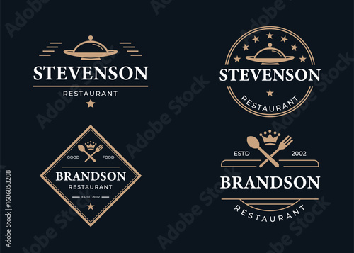 Stylized Home Staging Logos. Home staging for selling. Set Logo of home staging for selling: dining table centerpiece. Icon set. harmonious logo variations of