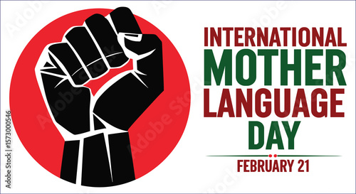 Black raised fist on red circle with international mother language day text vector