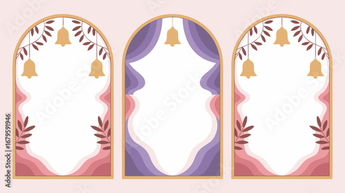 Luxury Social Media Wedding invite frame templates. Vector background. Mockup for social media banner. mobile Floral golden collage layout design.