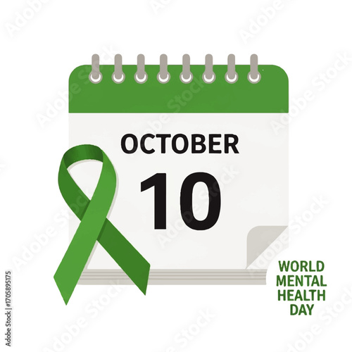 Calendar illustration showing October 10th, World Mental Health Day, with a green ribbon.