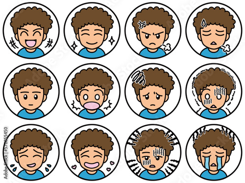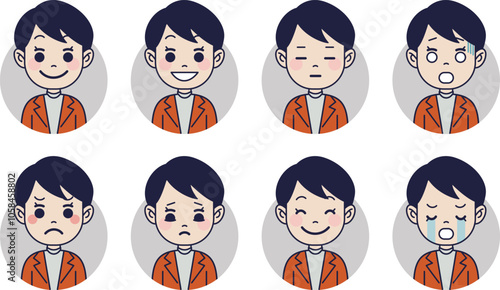 漫画的な表現を使ったいろいろな表情アイコンセット