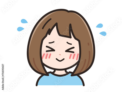 ブログで使えるアイコン ベクター版 女性03ショートカット 照れ顔
