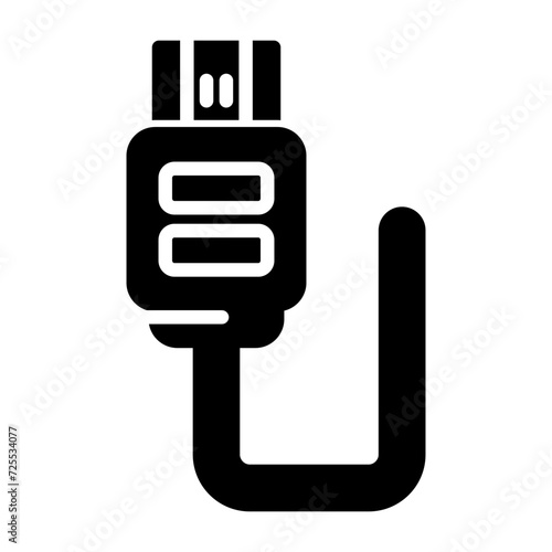Cable Wire Computer Plug. Simple Related Vector Icons Set for Video, Mobile Apps, Web Sites, Print Projects and Your Design. Cable Wire Computer Plug icon Black Flat Illustration on White Background.
