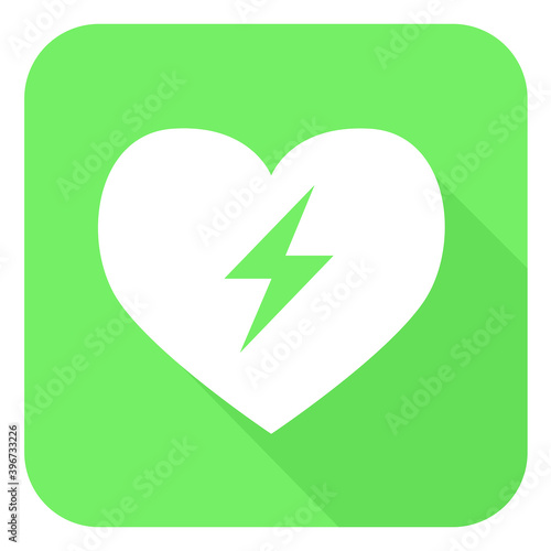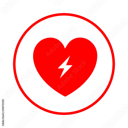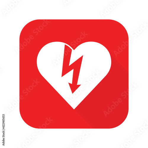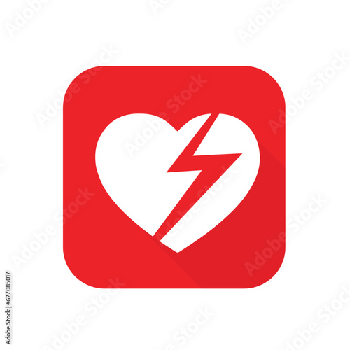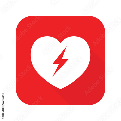 AED,automated external defibrillator / aed sign with heart and electricity symbol flat vector icon