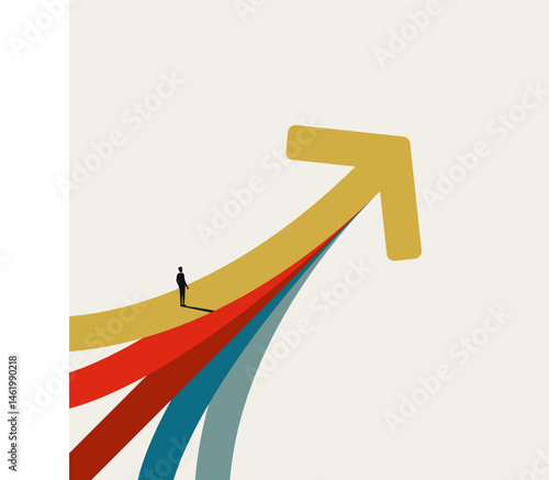 Dynamic arrows pointing upwards and to the side conveying growth progress success and forward movement useful for business concepts and strategies
