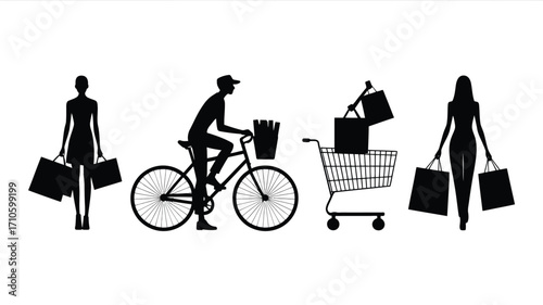 .contains a bicycle courier icon, delivery car, shopping basket and others.vector illustration