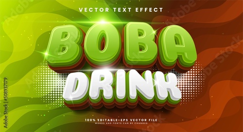 Editable text effect - Bubble Tea 3d Cartoon Cute style premium vector