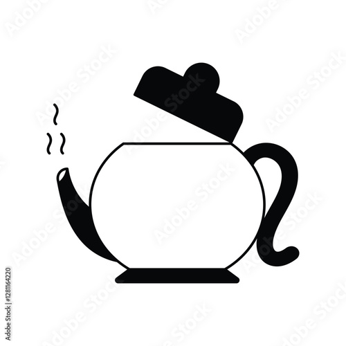 Transparent kettle, coffeepot for making coffee. Tea infuser for preparing herbal drinks. Modern teapot to boil water. Glass pot to brew hot beverages. Flat isolated vector illustration on white