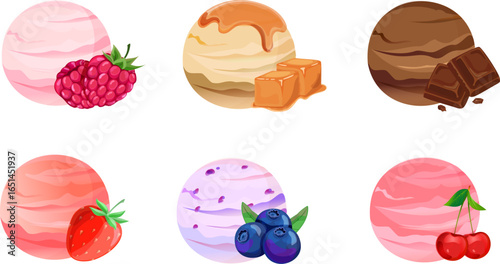Realistic Detailed 3d Ice Cream Scoops Set. Vector