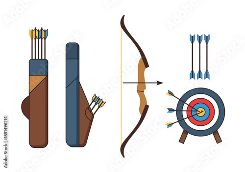 Realistic Illustration Bow and Arrow Traditional Archery Equipment Sport Hunting