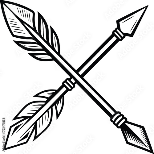 Stylized drawing of crisscrossed arrows with fletching and arrowhead details forming a unique decorative cross