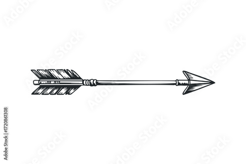 a single, black arrow with a detailed arrowhead and fletching, set against a white background