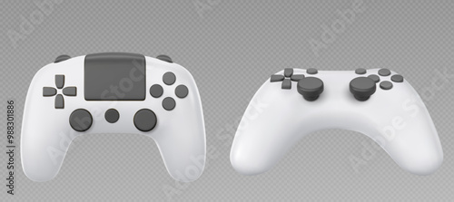 Two game controllers, one in color and one in black and white, representing gaming and entertainment on a clean white surface, creating a playful mood.