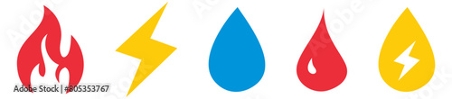 set of domestic utilities icons: electricity, water, heating and gas - vector illustration