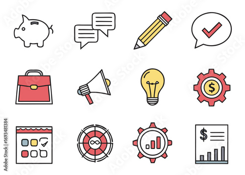Business related original icons. Network, teamwork, payment, computing, seo, ai etc. Editable stroke.