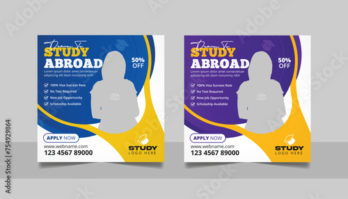 Study abroad social media post banner, Higher education social media post square flyer web banner template