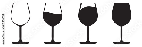 Wine glasses graphic icon set . Signs wine glasses with and without wine isolated on white background. Vector illustration