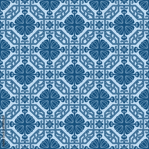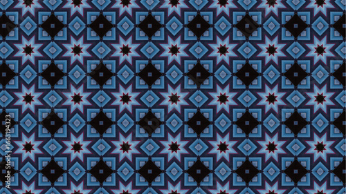 Geometric pattern with repeating shapes and vibrant blue color scheme.