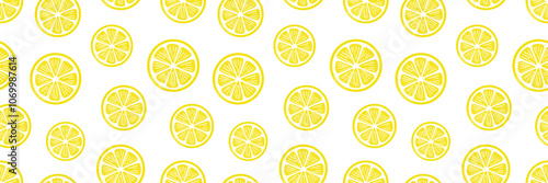 Lemon slices vector banner, seamless repeating citrus fruit pattern design, fresh summer cover template