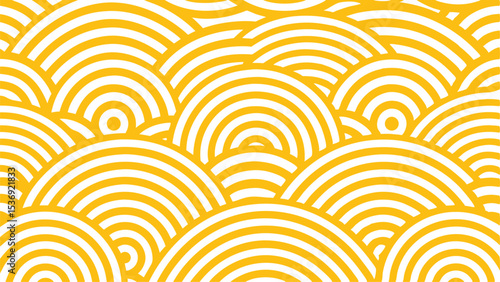 Abstract background with repeating pattern of yellow and white concentric semi circles and quarter circles