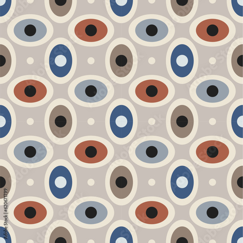 Mid-century modern seamless pattern, geometric shapes in retro colors. Abstract repeating geometry background