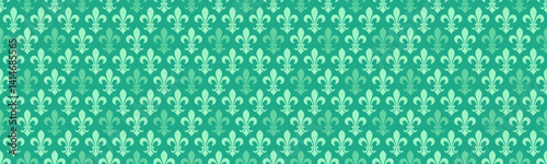 Elegant teal fleurdelis pattern, perfect for luxurious designs.  This repeating background offers a sophisticated and regal aesthetic, ideal for invitations, websites, or textile prints.