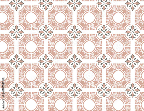 Geometric Pattern: Intricate geometric pattern with repeating circular and floral elements in a harmonious and balanced layout.