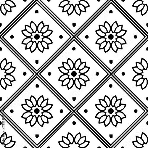 Seamless floral pattern black and white vector design flower tile repeating ornament textile background wallpaper art 100