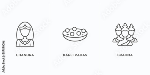 india outline icons set. thin line icons such as chandra, kanji vadas, brahma vector. linear icon sheet can be used web and mobile