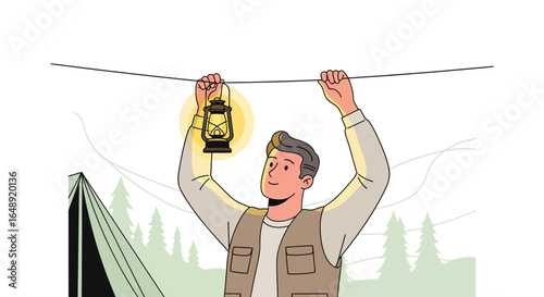 Person put on fire his hands for having heat from fire to warm up his body and warm surroundings. Flat vector illustration isolated on white background