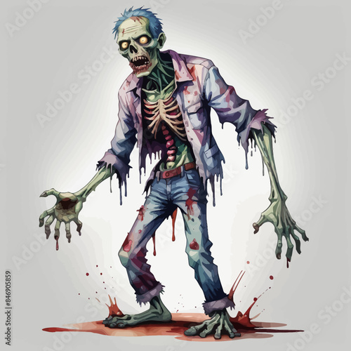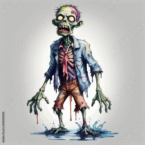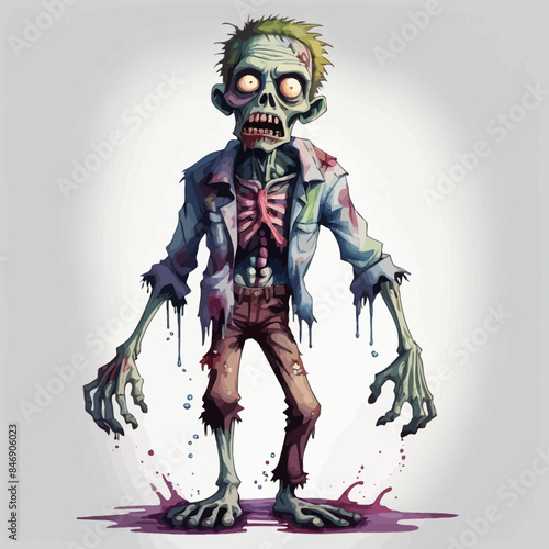 cartoon scary zombie man in torn tattered suit with tie