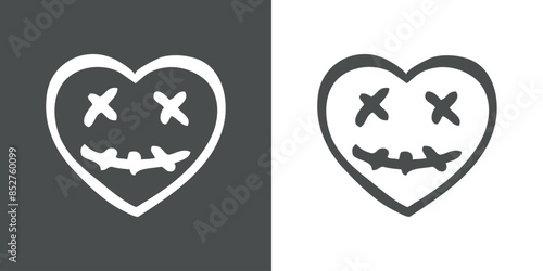 Logo con grupo de emoticonos de zombi con corazones en lugar de ojos para invitaciones y tarjetas de Halloween. Cara de zombi como personaje emoji