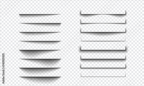 Set of realistic shadow effect on a transparent background, page separation vectors