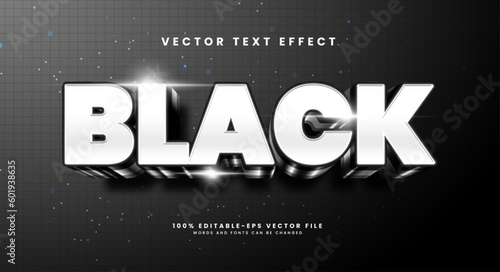 Editable 3d text style effect - Simple Sticker Black White text effect Template