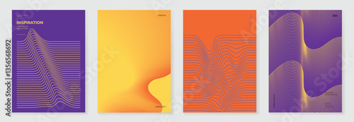 Abstract line wave poster background vector set. Minimalist cover template with vibrant perspective line wave in motion. Ideal design for social media, cover, banner, flyer, music, ads.