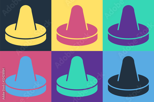 Set Mallet and puck for playing air hockey game icon isolated on white and green, black background. Vector Illustration