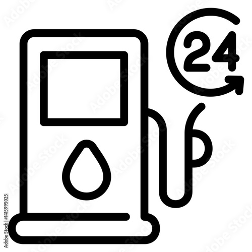Minimalist gas pump icons in outline and solid black styles for fuel station and transportation design projects