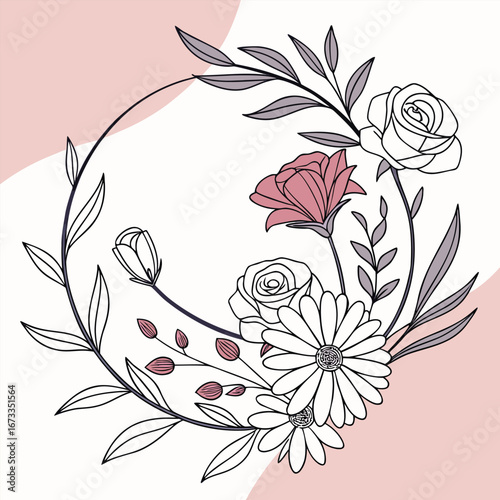 Delicate floral pattern design featuring soft pink flowers and green leaves on a light background