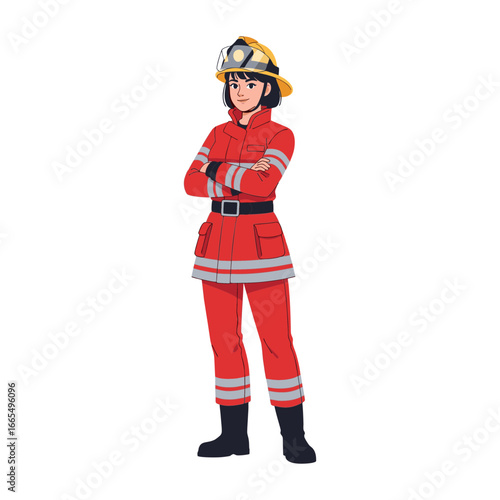Firefighter illustration. Firefighter-rescue extinguishes the fire. Dangerous profession. A man in a fireproof suit.