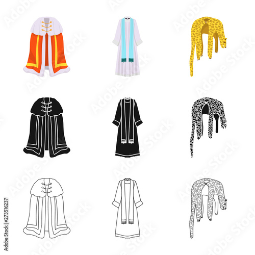 Vector illustration of robe and garment logo. Collection of robe and cloth stock symbol for web.