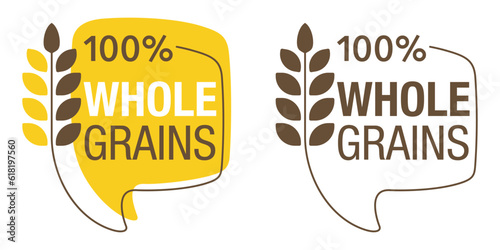 Whole grain logo, wheat spikelet product emblem