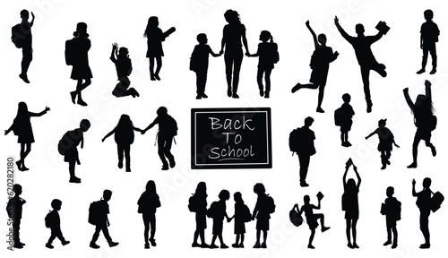 Vector silhouette illustration of happy children jumping and playing, energetic kids in motion, joyful childhood activity poses, isolated on white background