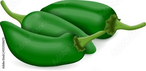 Group of Green Jalapeno chili peppers. Jalapeno. Capsicum annuum. Chili pepper. Fresh organic vegetables. Vector illustration isolated on white background.