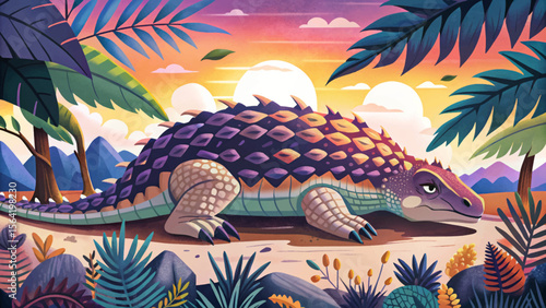 Dinosaur in the habitat. Vector Illustration Of Ankylosaur