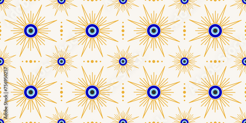 Evil eyes seamless pattern. Vector illustration of protective talismans. Line art. Texture for printing, textile..eps