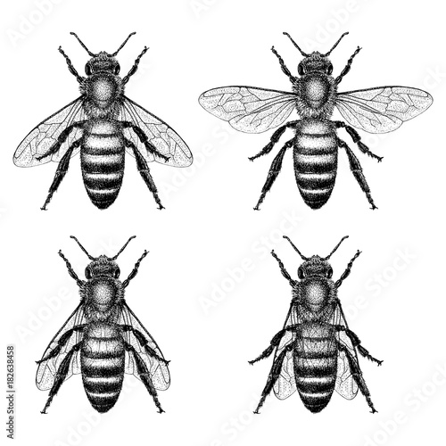 Honey bee illustrated in a vintage style.  Yellow is isolated on a separate layer.