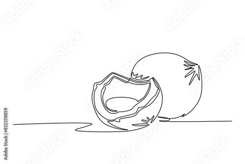 Coconut simple vector line illustration. Single line art drawing with lettering organic coconut.