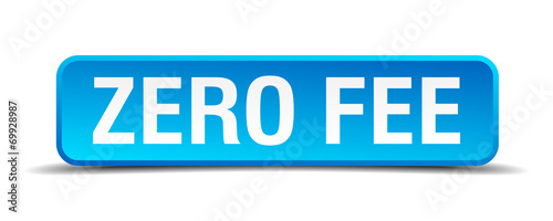 Zero fee blue 3d realistic square isolated button